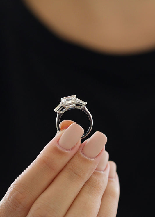3.01 CT Emerald Solitaire CVD E/VS Diamond Engagement Ring