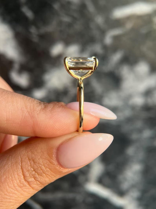 4.5 CT Emerald Hidden Halo CVD G/VS Diamond Engagement Ring