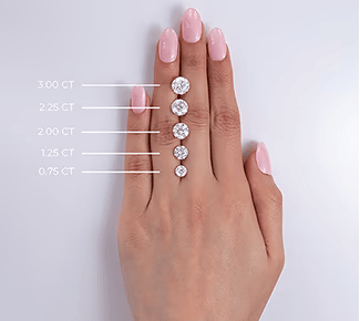 Additionally, differences in carat sizes can appear very minimal to the untrained eye. A 0.25 carat diamond will be noticeably smaller than a 2 carat diamond, but the difference in size between a 0.90 carat and a 1 carat diamond will not be substantial.