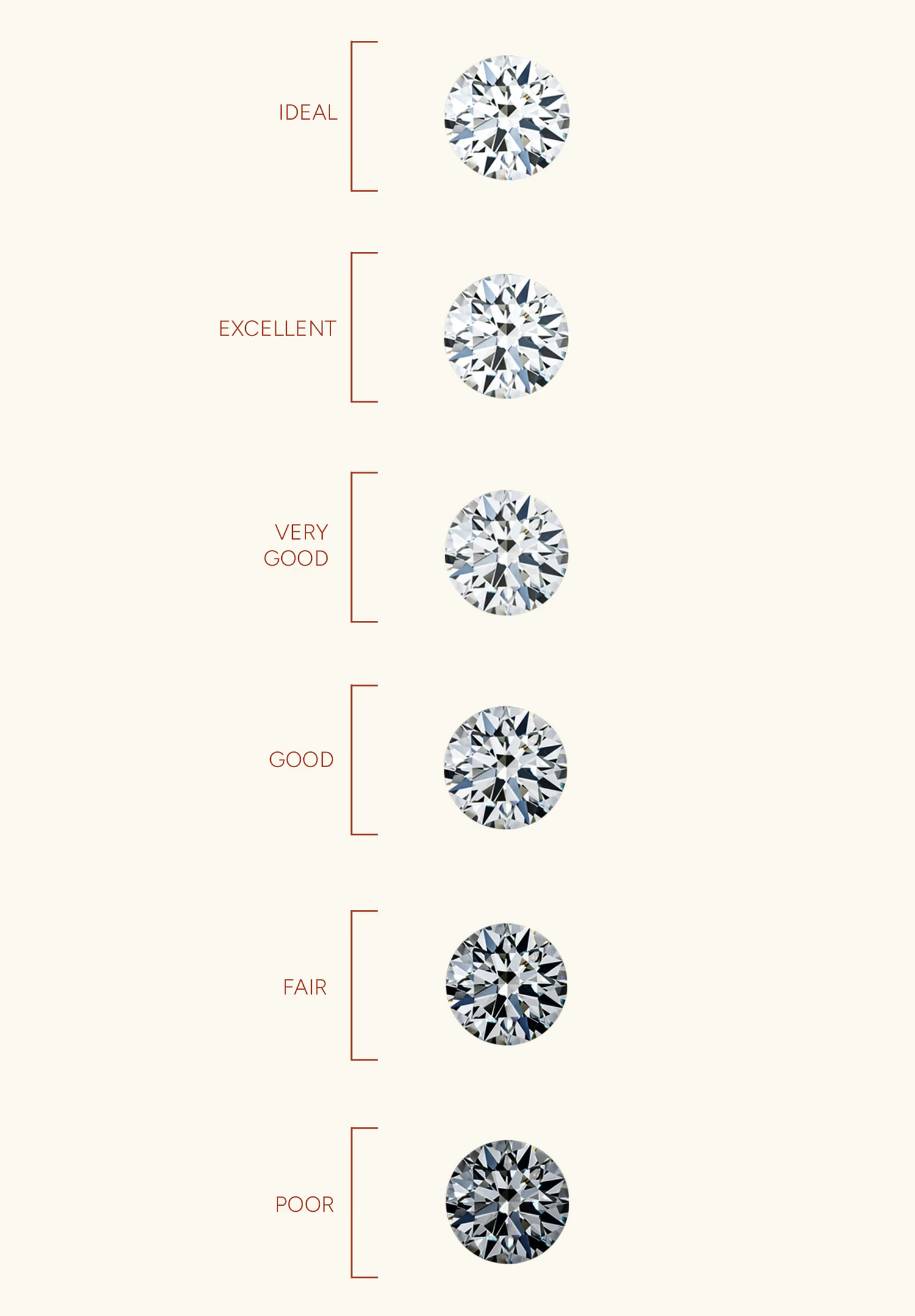 - Poor Cut diamonds appear dim and asymmetrical, with uneven spots on their surface.