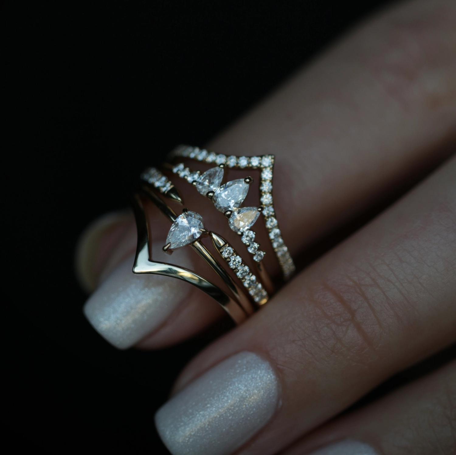 0.43 CT Pear & Round Multi Stones CVD EF/VS Diamond Wedding Band