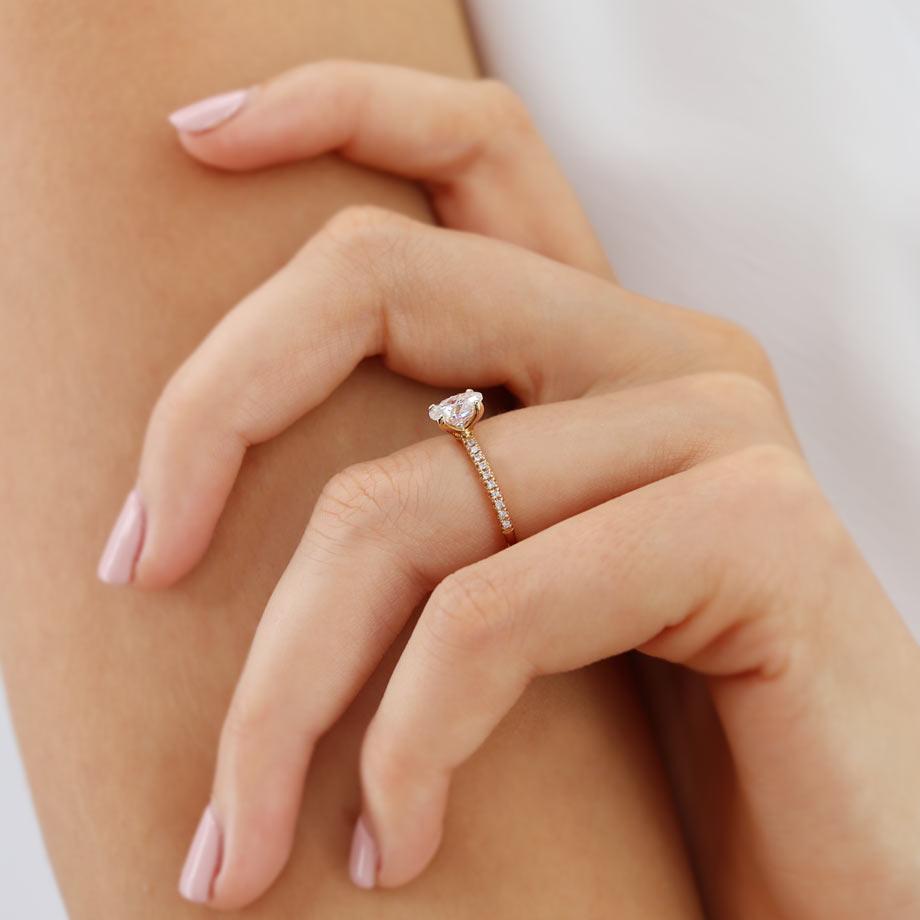 ✦ The Ring Shown in the Picture Holds a Beautiful 0.90 CT Oval Cut G-Color, VVS2 -Clarity CVD Lab Grown Diamond.