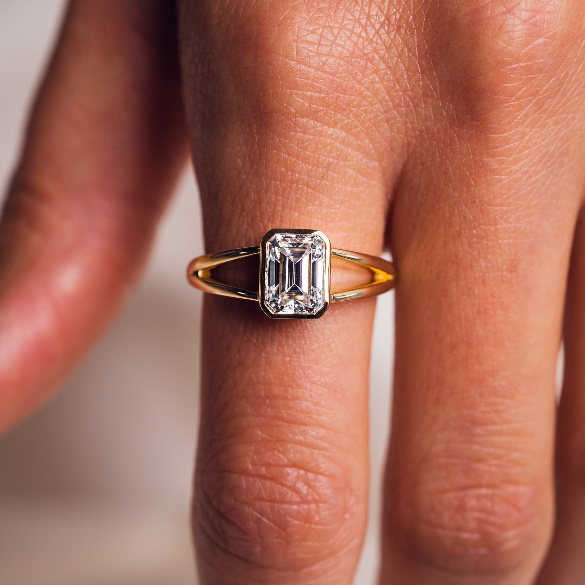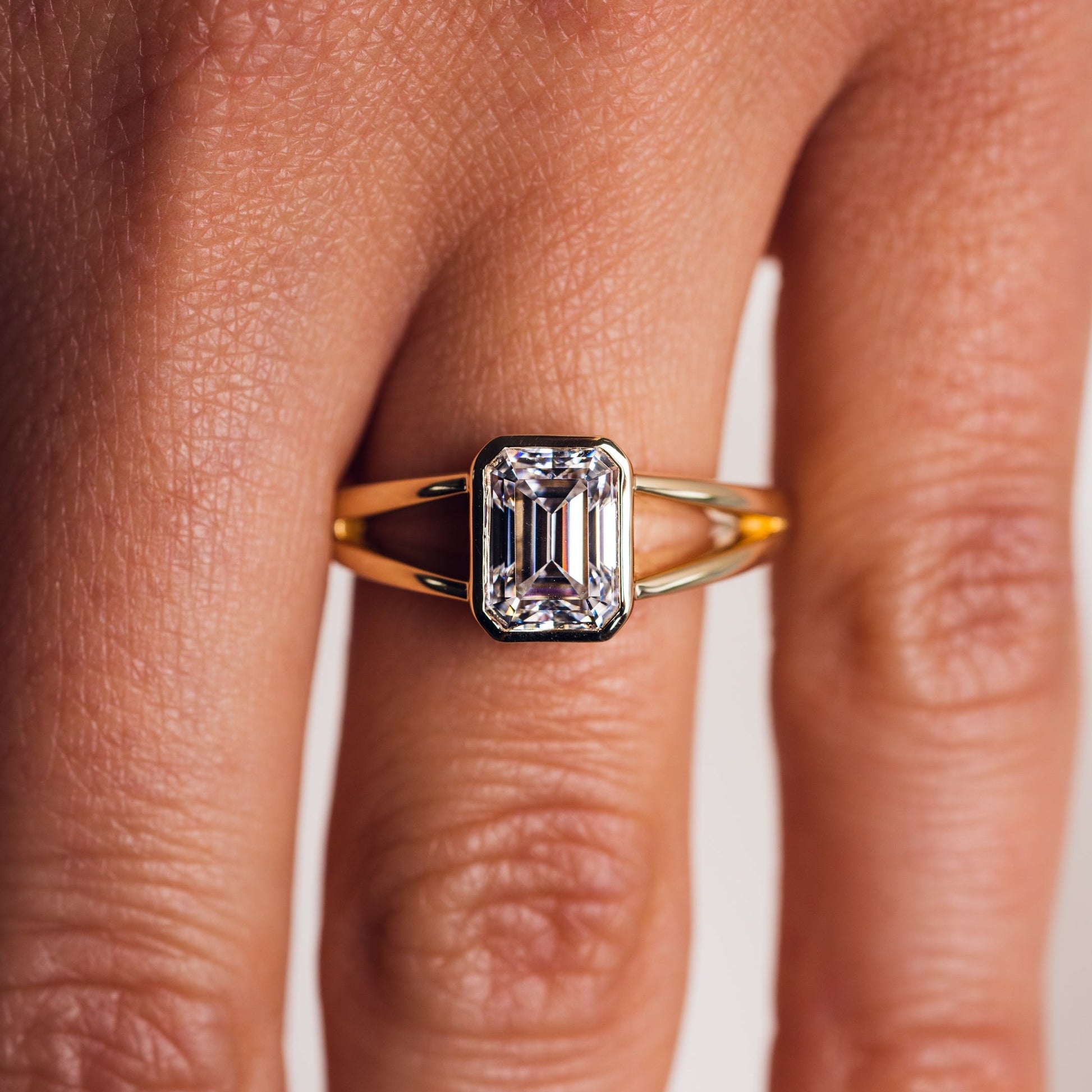 1.6 CT Emerald Solitaire & Split Shank Moissanite Engagement Ring