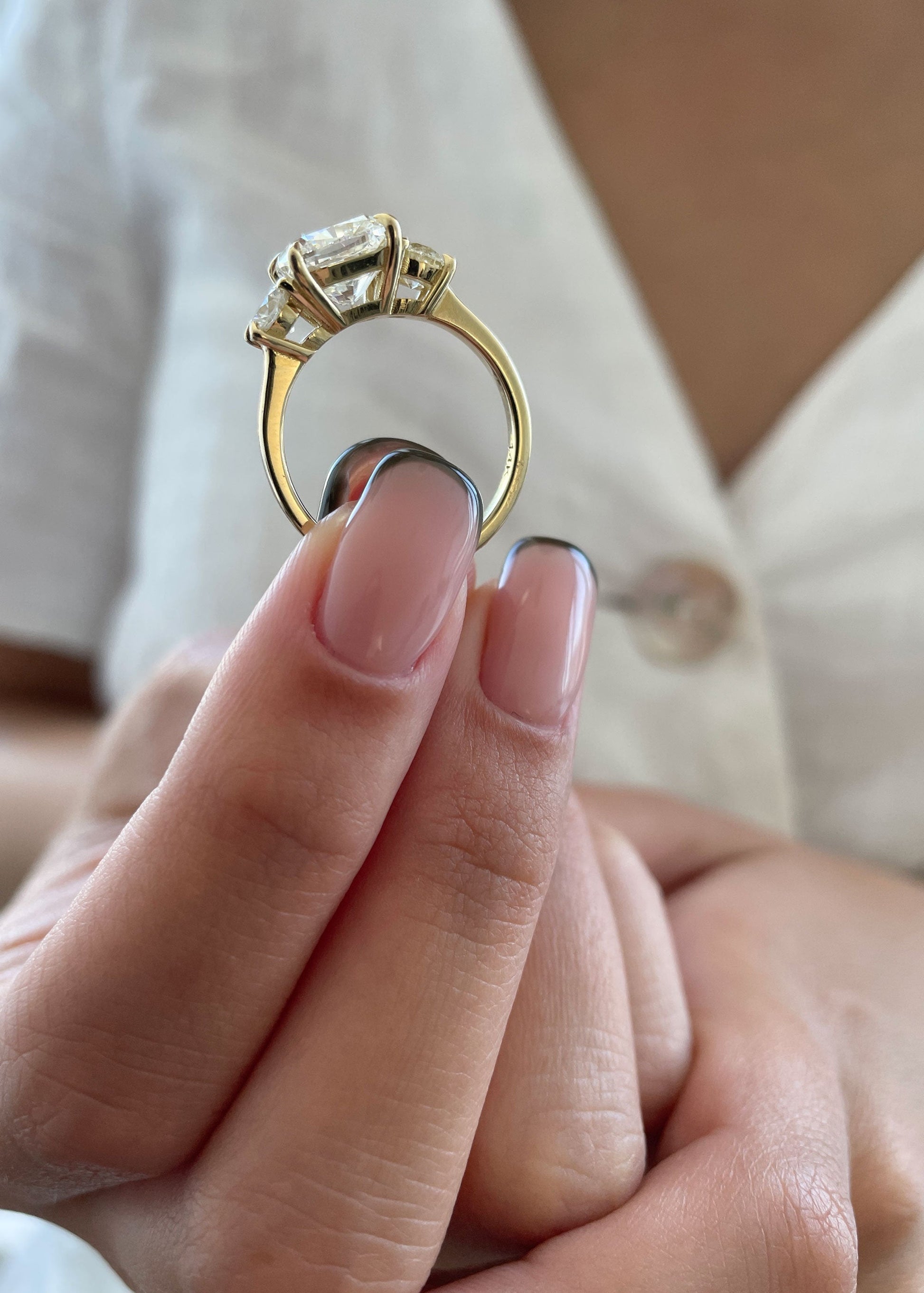 We always recommend taking your ring off while you do the dishes, yard work, or any heavy lifting. Removing your ring during on these occasions will keep it in better shape for longer. That said, it’s important to have one safe place that you leave your ring when you take it off—don’t risk setting it down and forgetting where it is!
