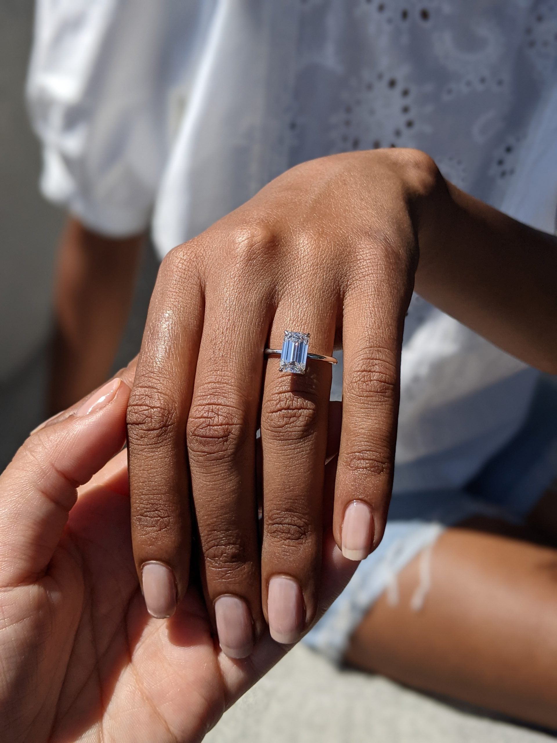 ✦ The Ring Shown in the Picture Holds a Beautiful 2.6 CT Emerald D-Color, VVS2-Clarity CVD Lab Grown Diamond.