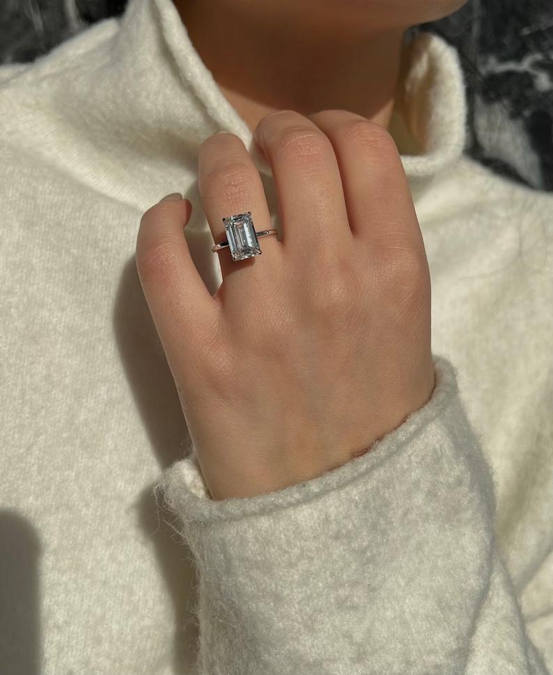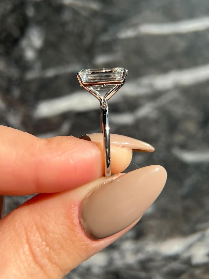 ✦ The Ring Shown in the Picture Holds a Beautiful 5.0 CT Emerald Cut E-Color, VS2-Clarity CVD Lab Grown Diamond.